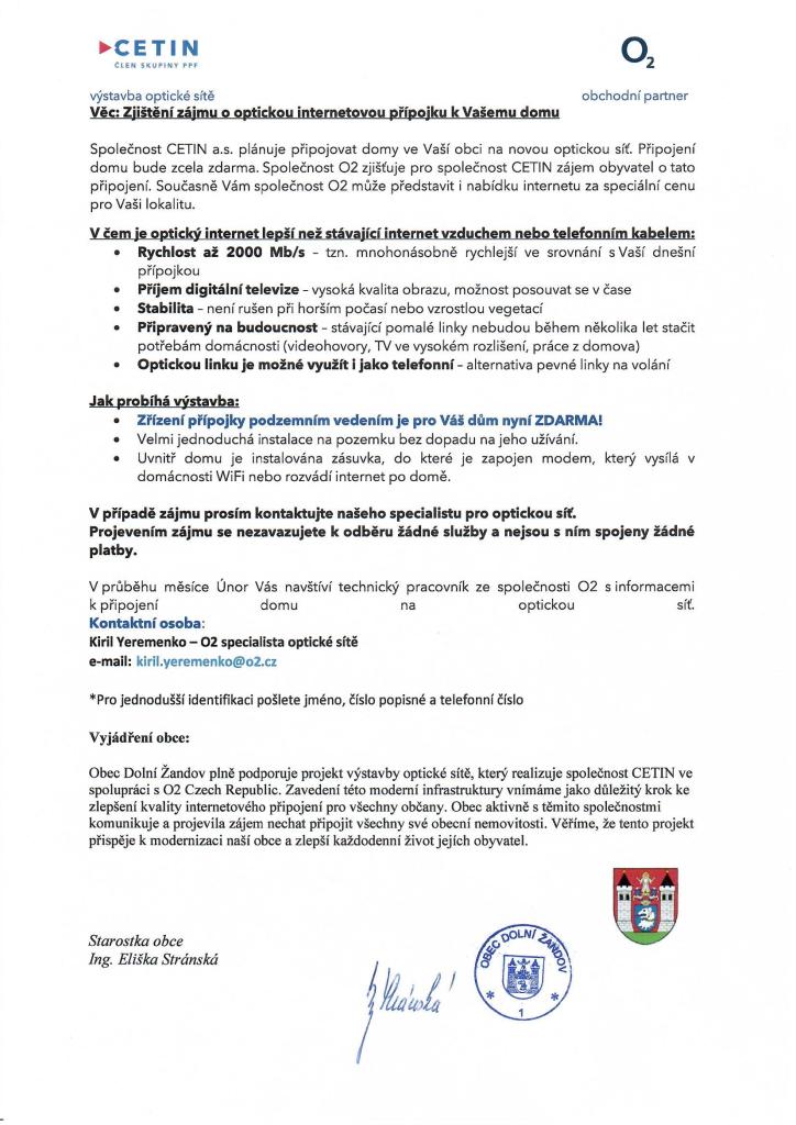 Optická síť Dolní Žandov - upozornění pro občany a dopis
