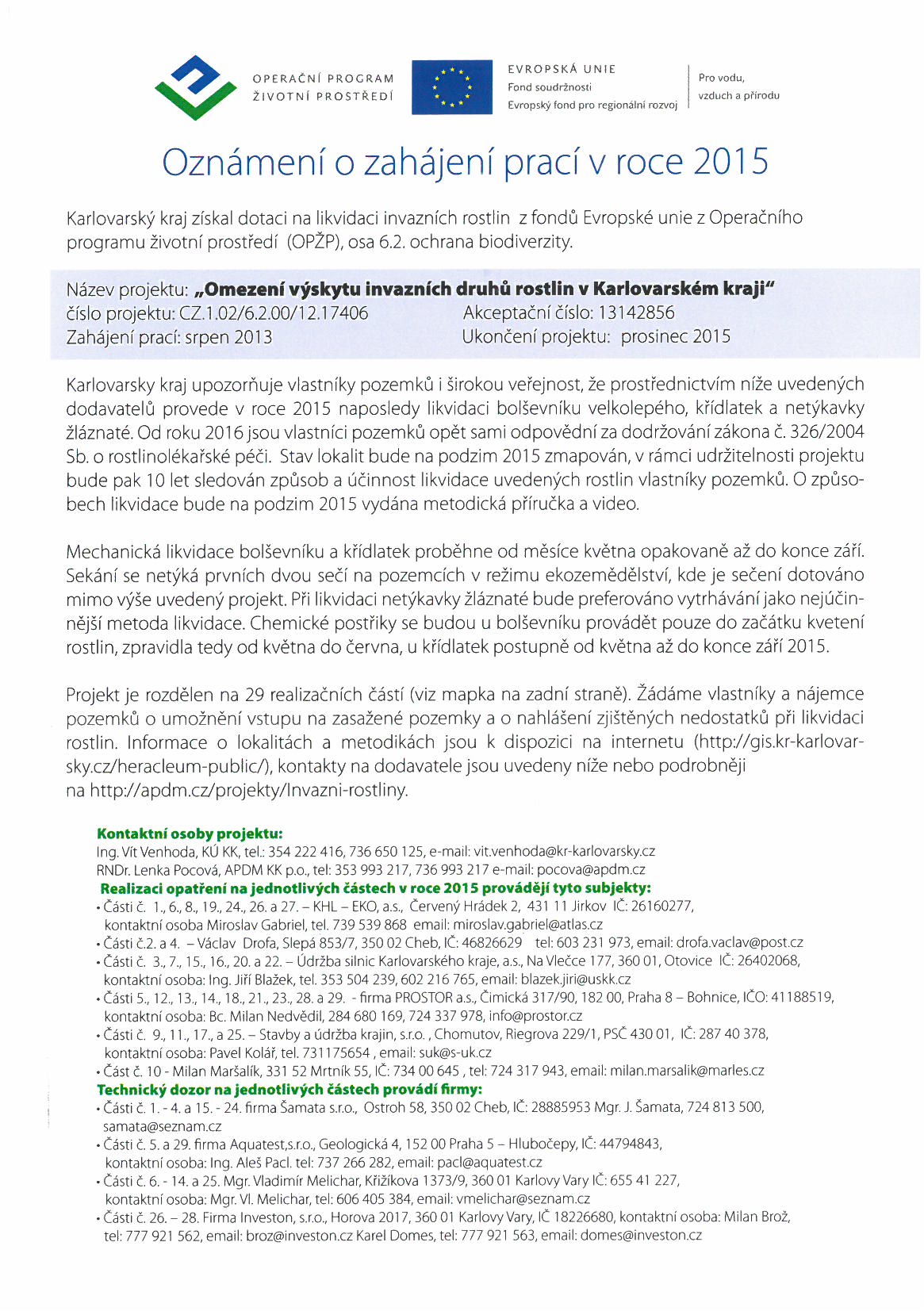 Oznámení o zahájení prací v roce 2015 - omezení výskytu invazních druhů rostlin v KK