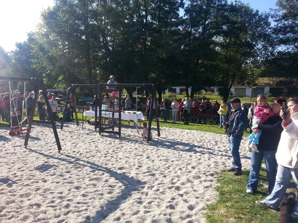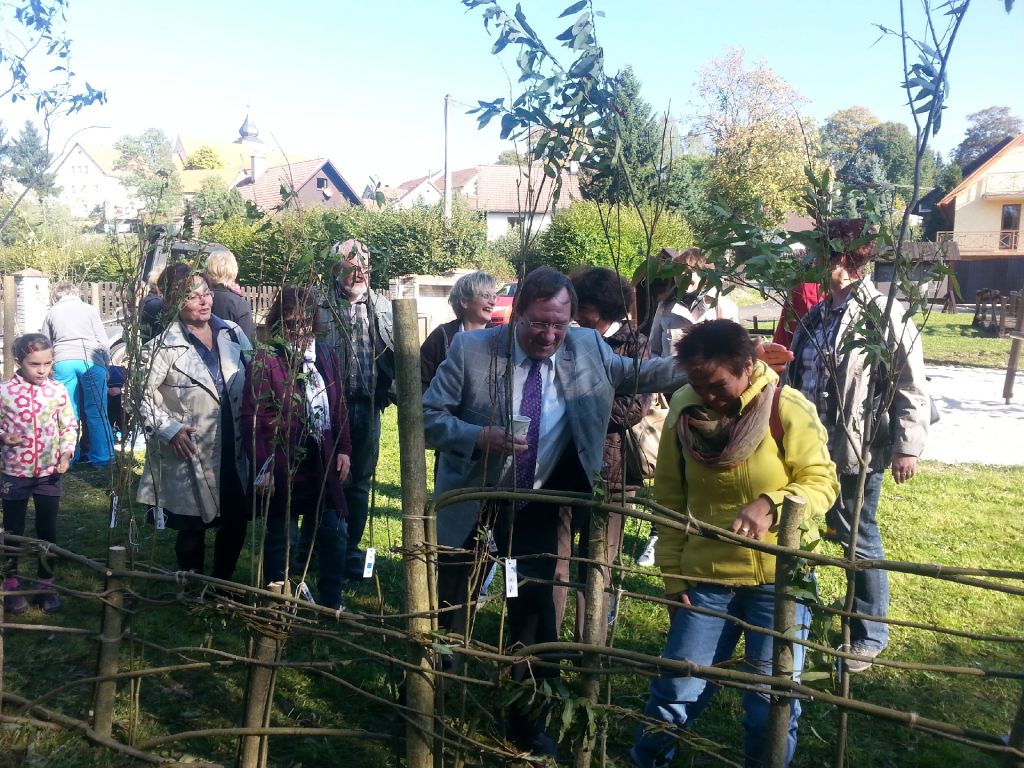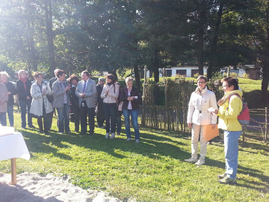 Společná výsadba zeleně v Dolním Žandově v rámci projektu "Společná výsadba zeleně" spolufinancovaného Evropskou unií za účasti zástupců německého partnera projektu, obce Mähring, dne 28.09.2013 na dětském hřišti pod obecním úřadem u potoka.