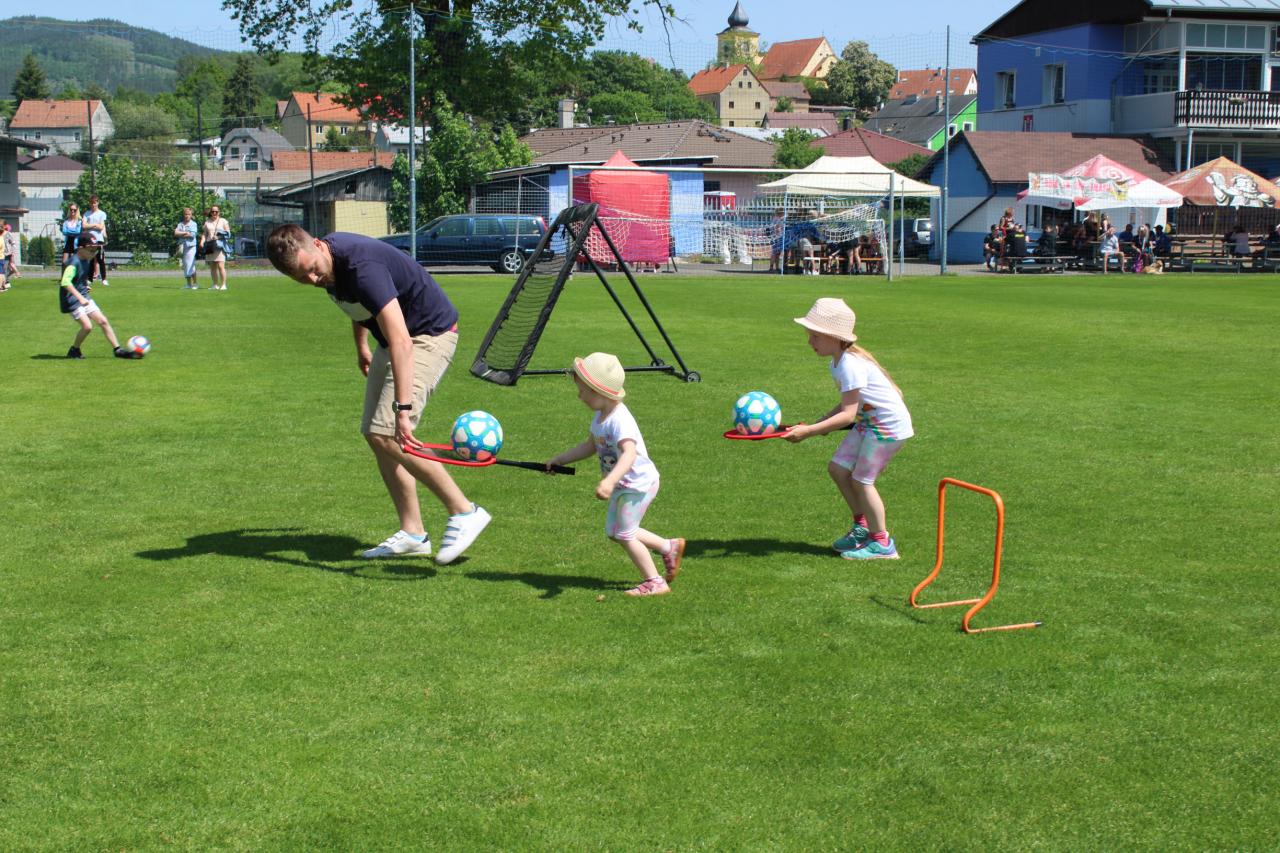 Fotografie z oslavy Dne dětí na hřišti TJ Sokol v Dolním Žandově.